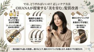 OHANAでは、髪質改善を単発の施術ではなく、「育てる美容」として提案。