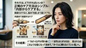 この状態になって初めて、“オイルに頼らなくてもいい髪”になります。